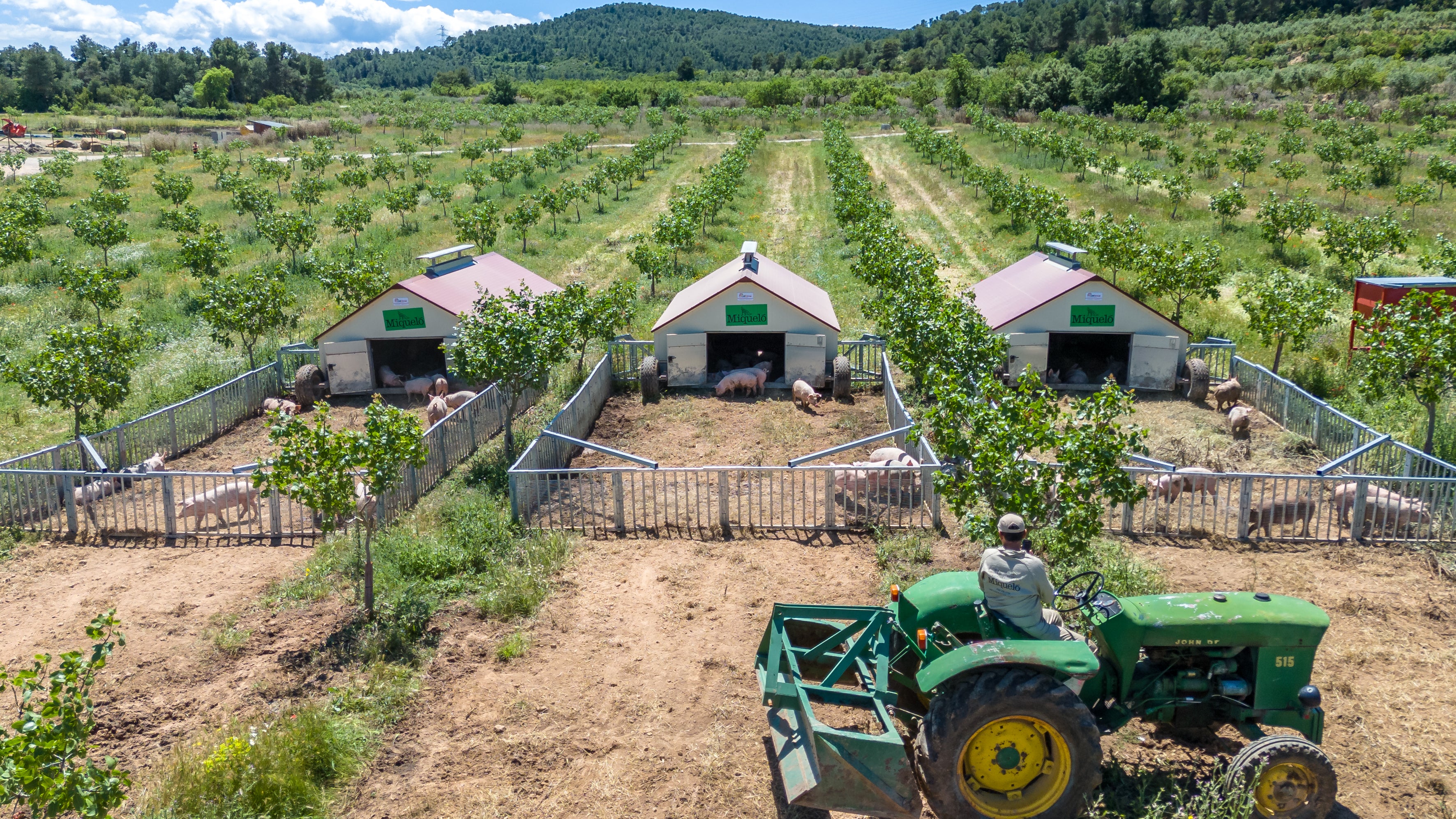 El proyecto PROPORC desarrolla un sistema de pasto rotacional intensivo de cerdos en cultivos de pistacho ecológico, mediante prototipos de estabulación dinámica.
